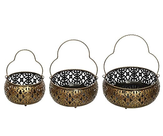 Antique Finish Beautiful Decorative Handmade Design Metal/ Iron Basket Set of 3 for Fruits Basket, Puja Basket, Flower Basket & Gift Hamper For Home Decor (SET OF THREE)Availability: 3 in stock