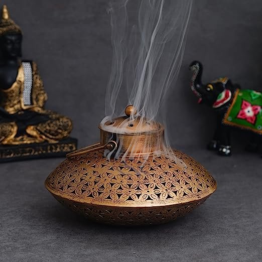 The versatility of the Dhoop & Tea Light Degchi Lantern is one of its defining characteristics. It is designed to hold both dhoop (incense) and tea light candles, offering you the flexibility to choose between fragrant aromas or soft candlelight, depending on your mood and preference. The dhoop holder, usually placed at the center of the degchi, allows you to burn your favorite incense sticks, filling the air with delightful scents. Meanwhile, the tea light candle holder, located inside the degchi, provides a safe and stable platform for tea light candles, casting a warm and inviting glow.
