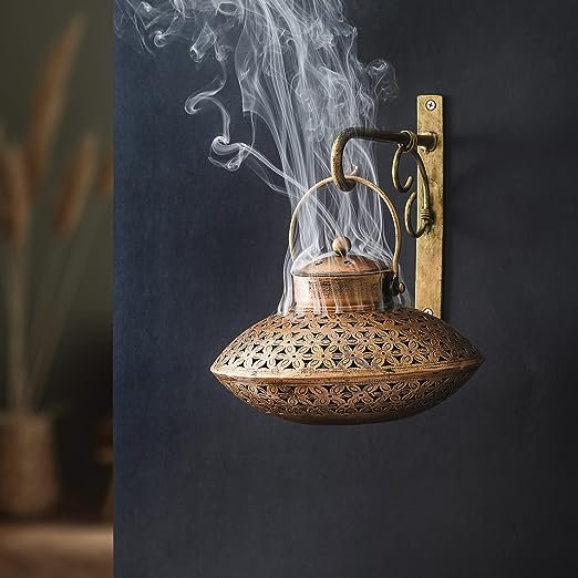 Big Size Dhoop & Tea Light Candle Holder/ Lantern Hanging Degchi/Dhuni Antique Gold Finish with Hanging Hook for Diwali Gifts | Home Decoration | Gifts | Home Decor | Office Table Top | Drawing Room | Living Room | Puja Room | Bedroom | House Warming Gifts etc