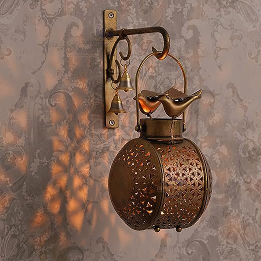 Cast Iron/ Metal Handmade Dhoop & Tealight Candle Holder/ Lantern with Hanging Hook Antique Gold Finish Decorative Item (Bird LALTERN)