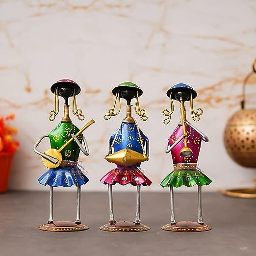 Set of 3 Antique Metal Decorative Tribal Musician Dolls Playing Musical Instrument Handicraft Item for Diwali Gifts | Home & office Decoration