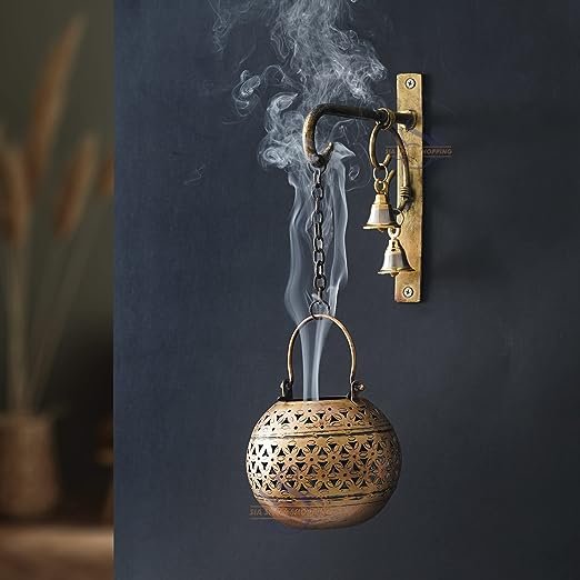 Sia Space Shopping ™ Cast Iron/ Metal Handmade Dhoop & Tealight Candle Holder/ Lantern with Hanging Hook Antique Gold Finish Decorative Item (Globe)